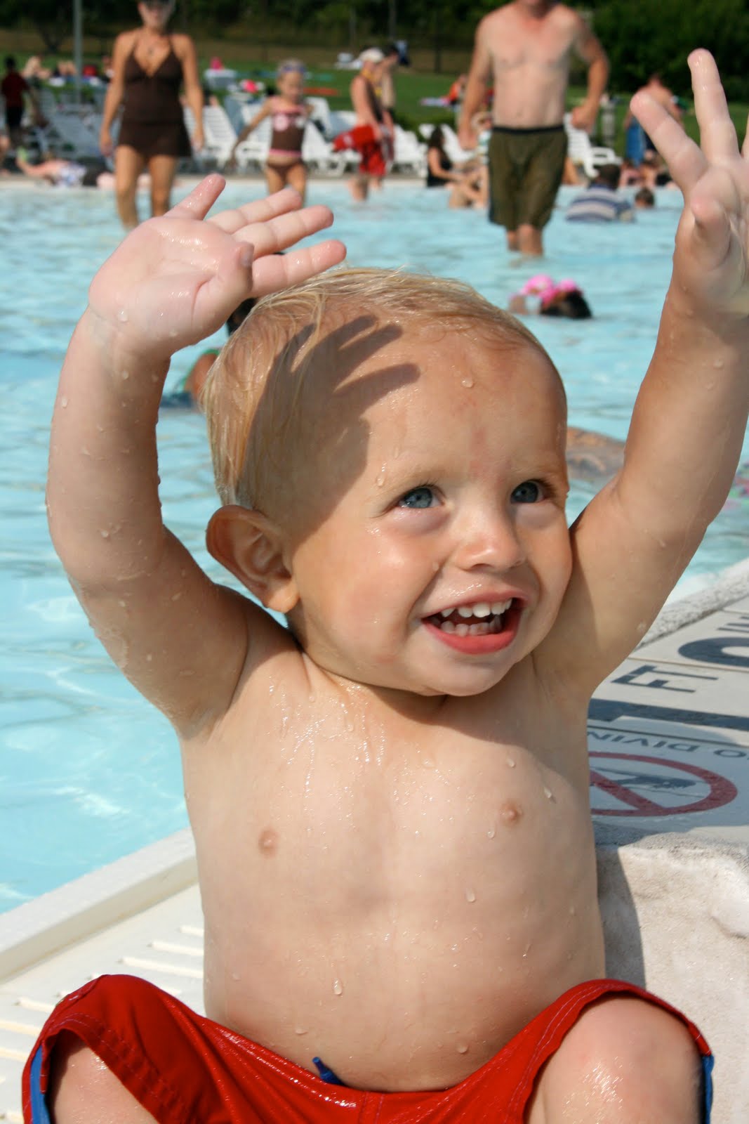 Because of the heat, it was SO crowded, and you know, as is typical in the Follett household, we can't go anywhere without something crazy happening. I momentarily took my eyes off of Landon as I was talking to my parents, and suddenly, he was gone! I looked around and couldn't find him, so I left the other two boys with my dad and started quickly searching for my little Landon. Where did I find him? No biggie.... just in the lifeguard's arms. Yup. Landon decided to jump in the pool when I looked away. And luckily (thank you God), he jumped in right where the lifeguard was posted. So, some paperwork and a slap on the wrist on my end (figuratively, not literally) later, we enjoyed the rest of the day incident-free.